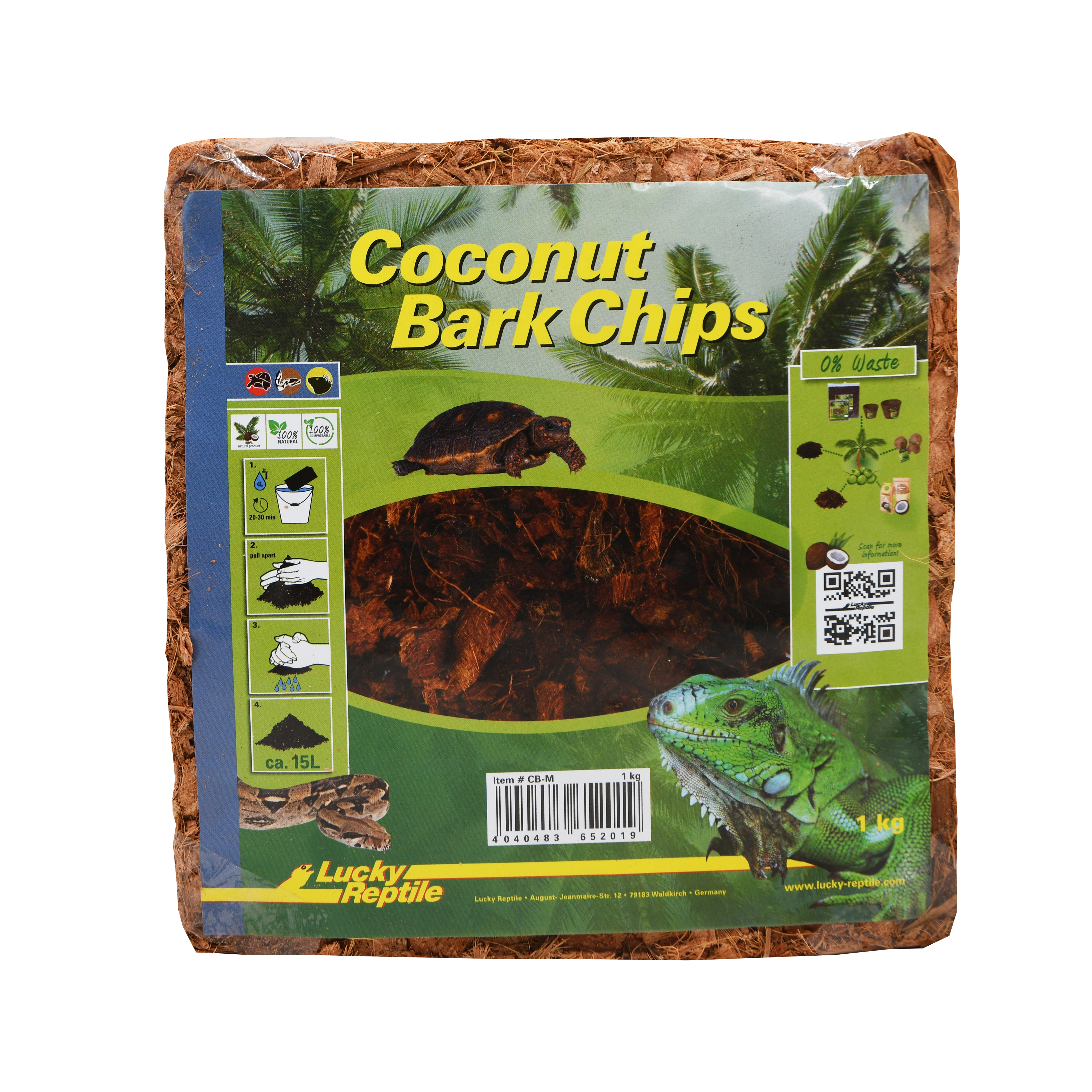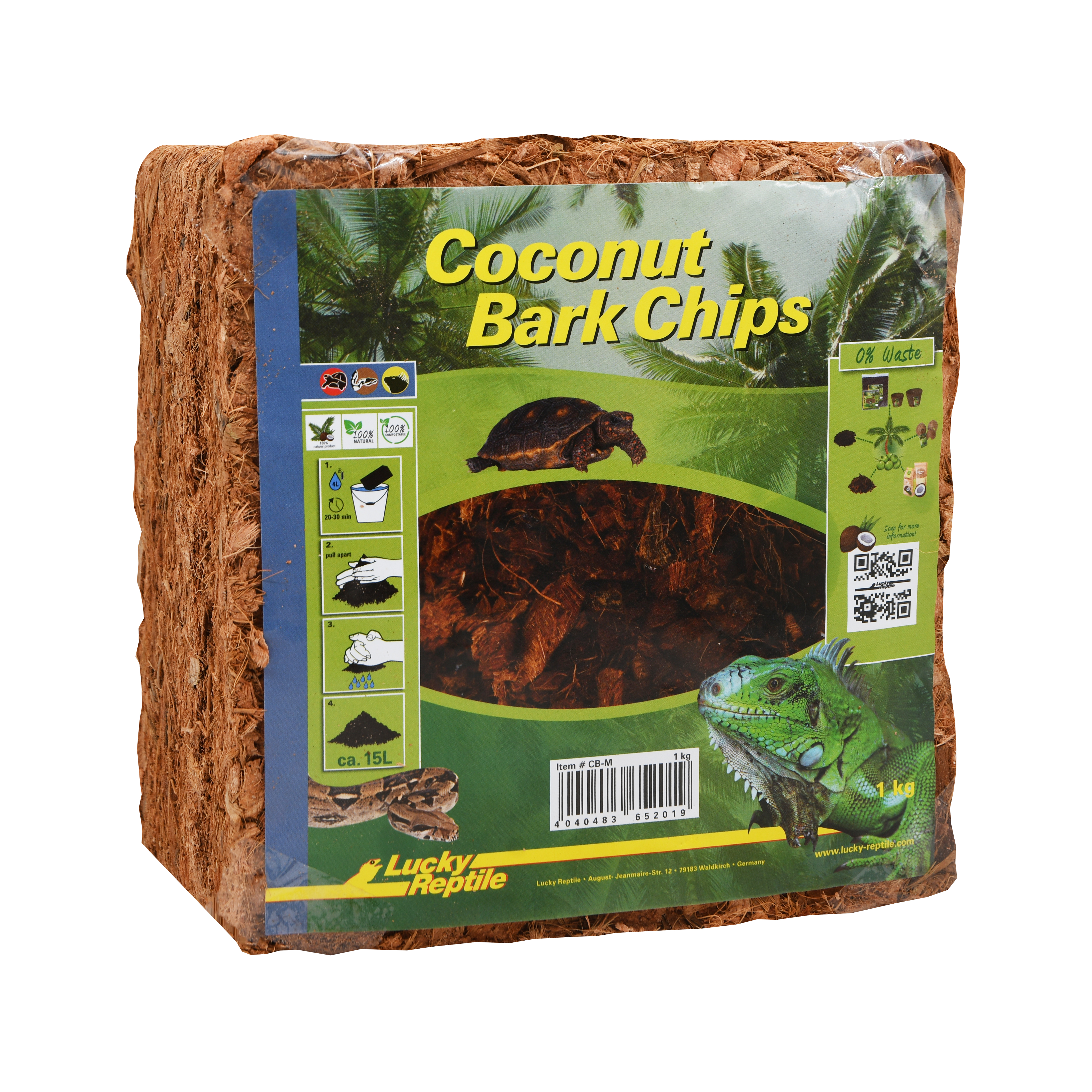 Lucky Reptile Coconut Bark Chips sind zu einem Ziegel zusammengepresste Kokoschips. Der Ziegel muss zuerst in warmem Wasser aufgeweicht werden und ergibt ca. 8 Liter attraktives Kokoschip-Substrat. Dieses ist ein guter Feuchtigkeitsspeicher und sehr verrottungsfest. Es behält über eine lange Zeit sein attraktives Aussehen und eine hohe Saugfähigkeit. Die Kokoschips sind ein sehr guter Bodengrund für Schlangen, tropische Echsen und große Landschildkröten und als reines Naturprodukt 100% kompostierbar.